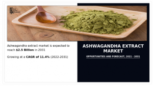 WILMINGTON, DE, UNITED STATES, October 9, 2025 /EINPresswire.com/ -- The global ashwagandha extract market size generated $864.3 million in 2021, and is expected to reach $2.5 billion by 2031, witnessing a CAGR of 11.4% from 2022 to 2031.