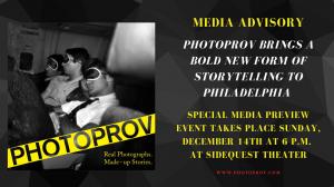 PhotoProv, the brainchild of photographer, improviser, and creative director Katarina Kojic, will host an exclusive media preview performance on Sunday, December 14th at 6:00 p.m. at SideQuest Theater, 2030 Sansom Street in Center City Philadelphia.