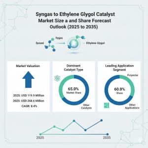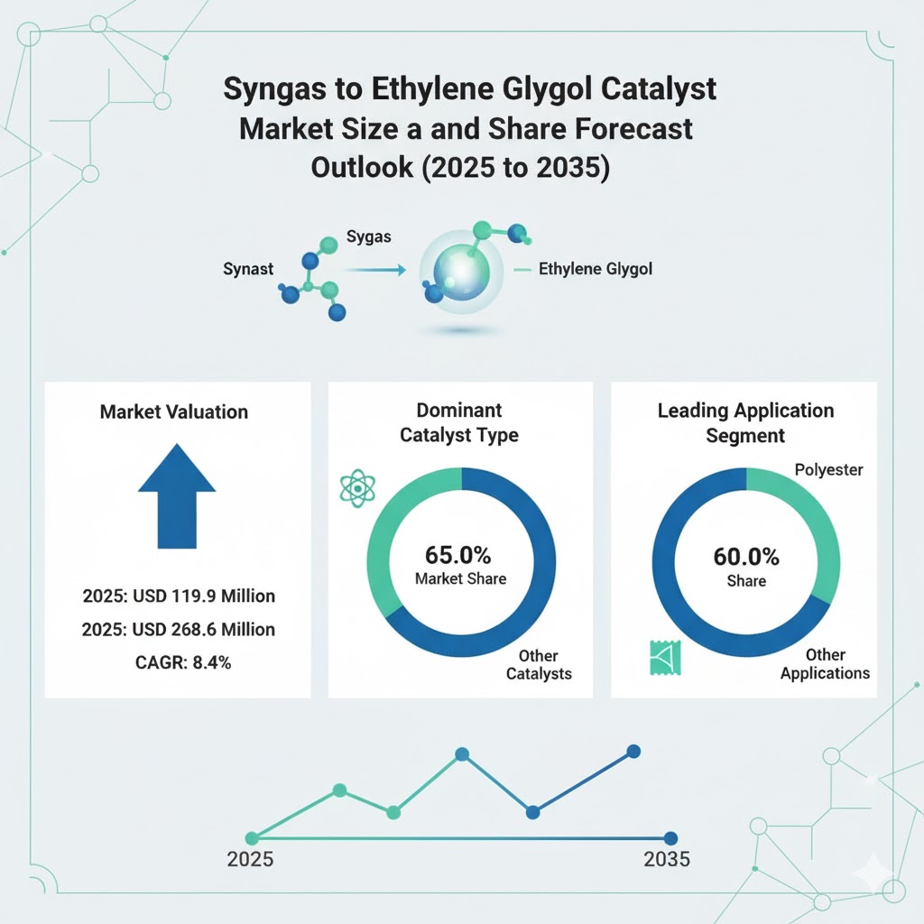 NEWARK, DE, UNITED STATES, October 20, 2025 /EINPresswire.com/ -- The global syngas to ethylene glycol catalyst market is experiencing pronounced regional differentiation as Asia-Pacific establishes commanding growth momentum driven by massive chemical manufacturing expansion and government-backed carbon neutrality initiatives, while Europe maintains strategic innovation leadership through advanced green chemistry capabilities and sustainable technology development. With the market valued at USD 119.9 million in 2025 and projected to reach USD 268.6 million by 2035, representing a compound annual growth rate of 8.4% and approximately 2.24X market expansion, regional dynamics are fundamentally reshaping competitive positioning across polyester manufacturing, antifreeze production, and sustainable chemical synthesis applications.